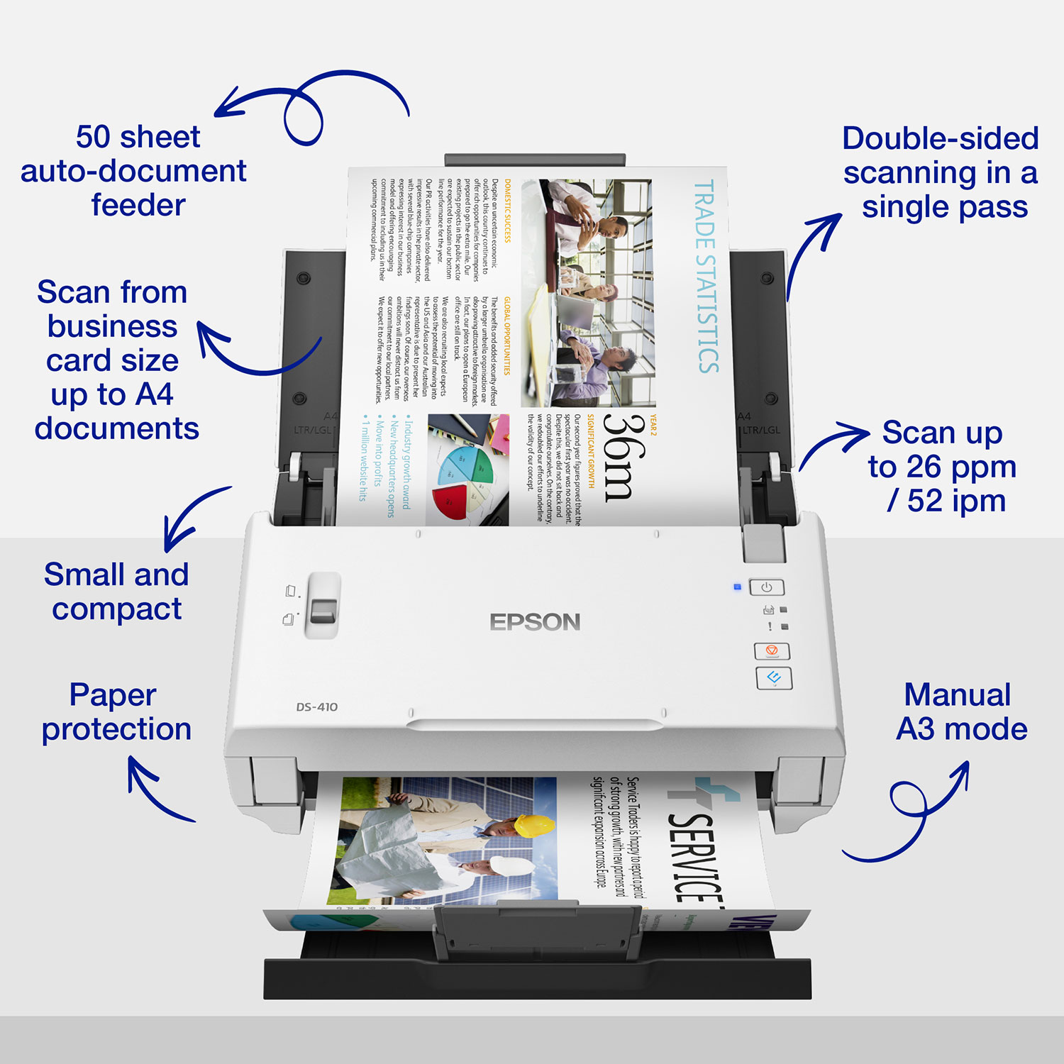 - Epson Scanner DS-410: Dirancang untuk kebutuhan pemindaian harian dengan volume sedang, DS-410 menawarkan kecepatan pemindaian yang solid. Ia mampu memindai hingga 26 halaman per menit (ppm) untuk dokumen hitam putih maupun berwarna, serta 52 gambar per menit (ipm) untuk pemindaian dua sisi (duplex). Ideal untuk kantor kecil, usaha rumahan, atau departemen dengan kebutuhan arsip digital yang tidak terlalu masif. Scanner Epson DS-410 – Solusi Pemindaian Terbaik …