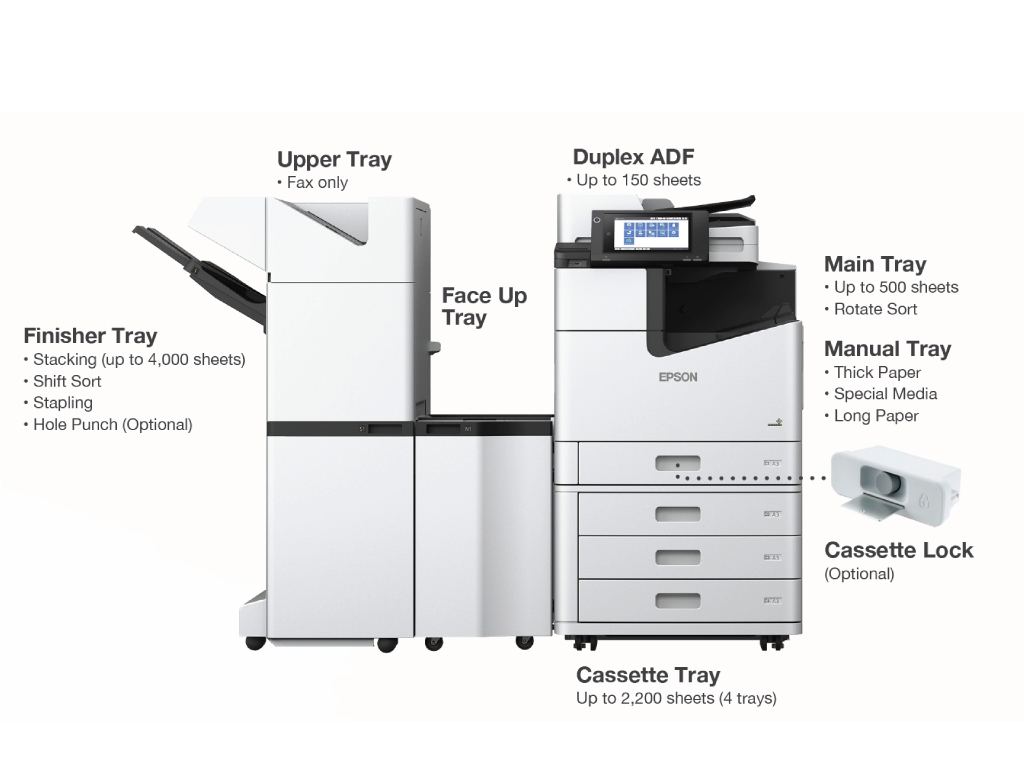 WF-M21000 sangat ideal untuk kantor hukum, akuntansi, atau departemen yang membutuhkan pencetakan cepat dan efisien untuk dokumen teks, faktur, atau laporan dalam format hitam putih.